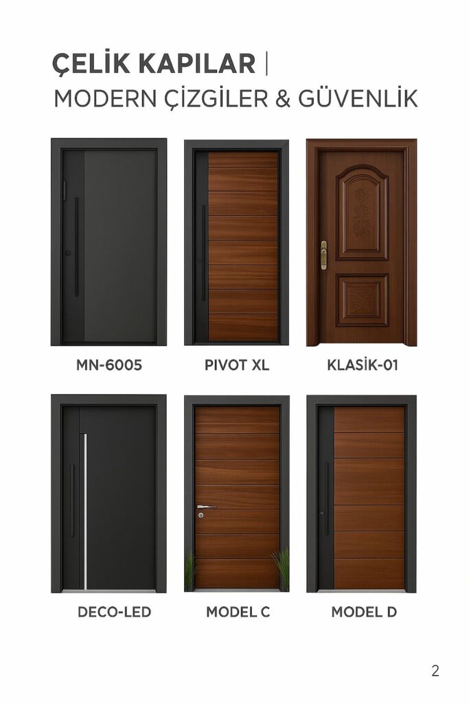 Konut ve ticari alanlar için farklı kapı modelleri sunulmaktadır.